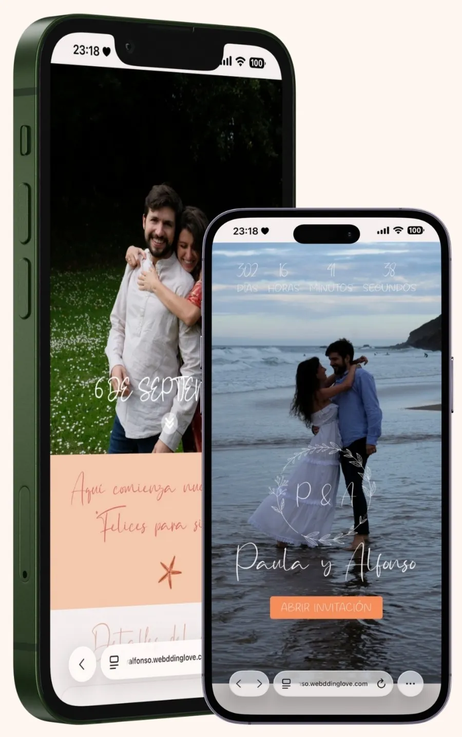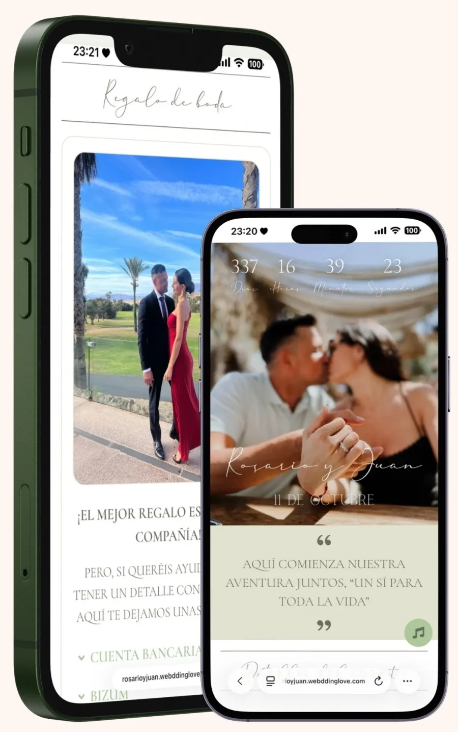 Publicado en Inma Parron SanchezNoviembre 10, 2025Trustindex verifica que la fuente original de la reseña sea Google. ¡No podemos estar más contentos con el trabajo de Eva! Ha sido profesional y maravillosa durante todo el proceso. Es una persona cercana, paciente y siempre dispuesta a ayudar. Con la cantidad de cosas que hay que tener en cuenta en una web de boda, ella nos ha ido guiando paso a paso y, además, ha tenido una paciencia infinita incluso cuando tardábamos en enviarle el contenido. El resultado ha quedado precioso. ¡La súper recomendamos! 💖 We couldn’t be happier with Eva’s work! She has been professional and wonderful throughout the entire process. She’s approachable and always willing to help. With so many things to think about when creating a wedding website, she guided us in every step of the way and was incredibly understanding, even when we took a while to send her the content. The result is beautiful. We highly recommend her! 💖Publicado en Stephanie HernandezOctubre 8, 2025Trustindex verifica que la fuente original de la reseña sea Google. He tenido una muy buena experiencia, un 10 en atención. Un 100 en website (me encantó he visto la tarjeta por lo menos unas 5 veces en 1hora) muy moderna muy hermosa y ella mucha paciencia !! Recomendable 100%Publicado en Miriam Gil RomeroAgosto 20, 2025Trustindex verifica que la fuente original de la reseña sea Google. Eva nos ha ayudado hacer las invitaciones de nuestra boda y ha sido una elección perfecta,super atenta, muy profesional, una persona muy agradable y nos ha ayudado en todo momento sin ningún problema. Sin duda volvería ha contratarlaPublicado en rosario cruzAgosto 11, 2025Trustindex verifica que la fuente original de la reseña sea Google. Encantada con el trabajo y el trato recibido por parte de Eva, un encanto de niña! Nos entendió a la perfección desde el primer momento lo que íbamos buscando, además te da consejos para que todo quede perfecto. No podemos estar más contentos con nuestra Web de boda!! Y por supuesto está siendo un éxito con nuestros invitados! Sin duda, volveríamos a repetir!Publicado en Julia SalinasJunio 3, 2025Trustindex verifica que la fuente original de la reseña sea Google. Una pareja encantadora y profesional. Sobre todo Eva que fue con la que más me mensajeé y hablé. Disponibilidad y amabilidad a la hora de crearla, los recomiendo 100%Publicado en Jose Gutierrez CanoMayo 27, 2025Trustindex verifica que la fuente original de la reseña sea Google. Muy contentos con la web que nos ha hecho Eva. Nos dio mucha confianza desde el principio y el resultado ha sido impecable.Publicado en Jessica Rojas AlarconMayo 27, 2025Trustindex verifica que la fuente original de la reseña sea Google. Un acierto por completo. Ha quedado super bonito, nos hemos emocionado mucho con el resultado. Y Eva un encanto 😍😍😍😍Publicado en almudena rodriguezMayo 24, 2025Trustindex verifica que la fuente original de la reseña sea Google. Recomiendo 100%!! Gran profesionalidad , perfeccionismo y mucho interés . Me han captado lo que buscaba al milímetro y lo han conseguido!. Estoy encantadisima!!Publicado en Estefania CanaldaMayo 15, 2025Trustindex verifica que la fuente original de la reseña sea Google. Encantadísimos!!!! Todo perfecto fácil y maravilloso!!!! Sin duda recomiendo 100%Publicado en Paula Angulo AcostaAbril 30, 2025Trustindex verifica que la fuente original de la reseña sea Google. Eva lo hace todo rápido, sencillo, bonito y con muuuucho amor ✨ Muy profesional y siempre súper atenta. Ha sido un gustazo hacer con ella la web de nuestra boda, gracias por todo!!! ❤️