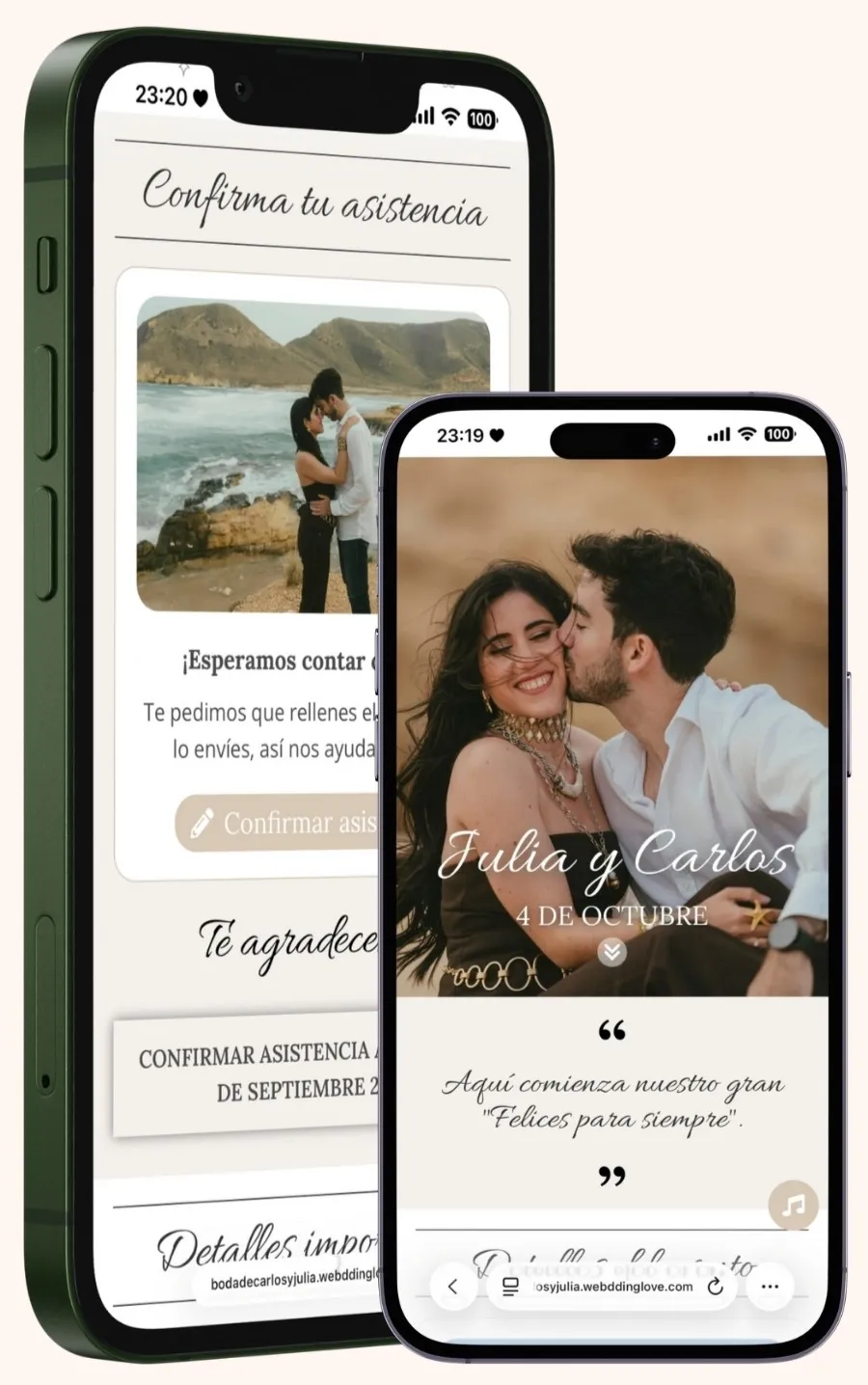 - Confirmación de asistencia (RSVP): Tus invitados pueden confirmar su asistencia fácilmente.